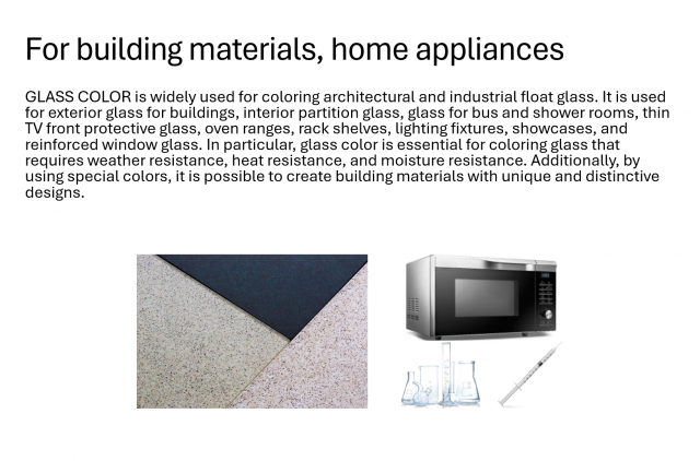 For this reason, it is highly trusted for applications beyond decorative glass, such as automotive windshields and rear glass, microwave oven panels, and medical ampoules.